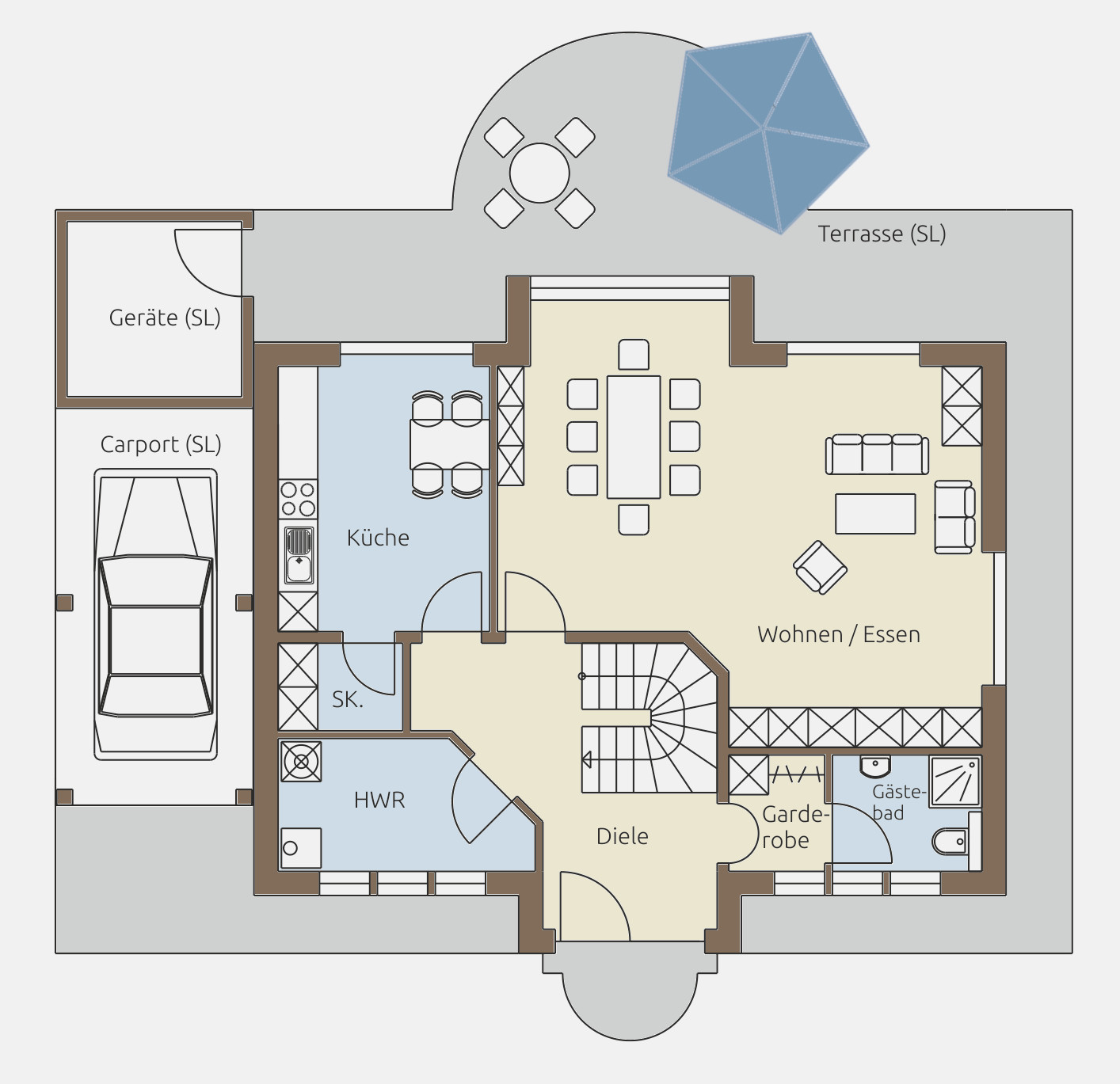 Hinweis: Die Abbildungen der hier gezeigten Häuser können Sonderleistungen enthalten. Maßgeblich sind ausschließlich die Planungszeichnungen und Baubeschreibungen der Hausserien.