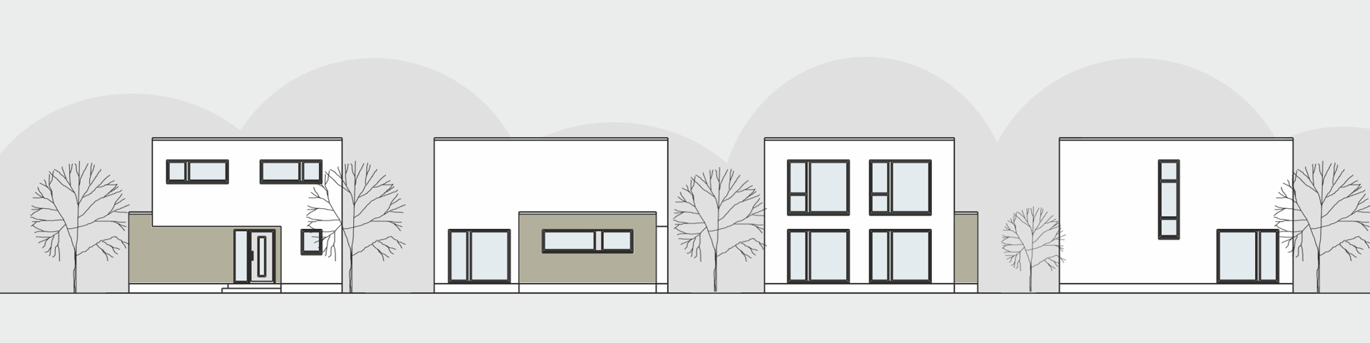 Klare Baukörper, ruhige Proportionen und große Glasflächen prägen die moderne Erscheinung.