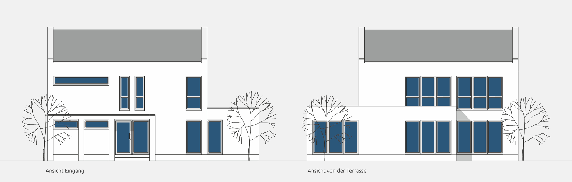 Dieser Entwurf ist geprägt durch die Giebel im Eingangs- und Terrassenbereich.