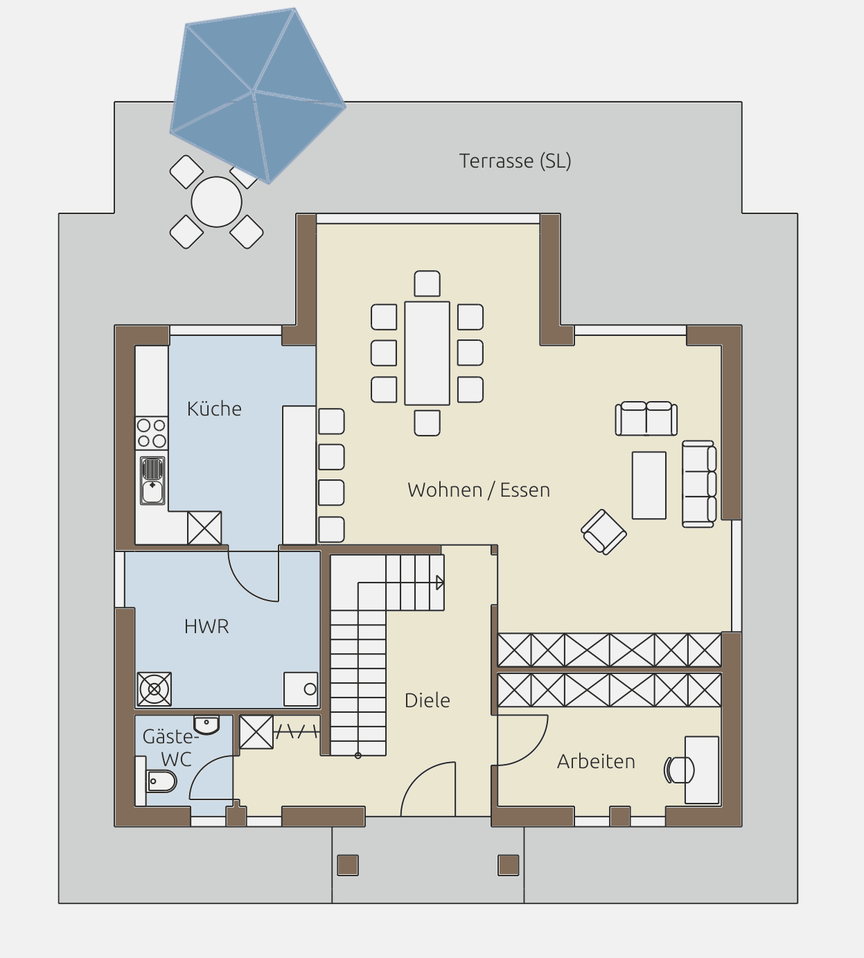 Das Erdgeschoss überzeugt durch eine funktionale und zugleich großzügige Raumaufteilung.